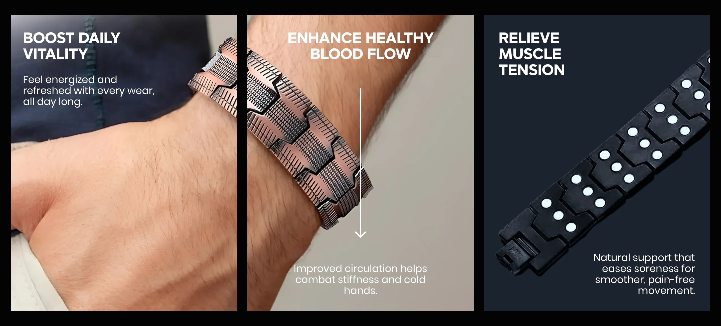 Our Copper Wristband is designed to support daily wellness, helping promote balance, good posture, and reducing discomfort linked with muscle tension and fatigue.