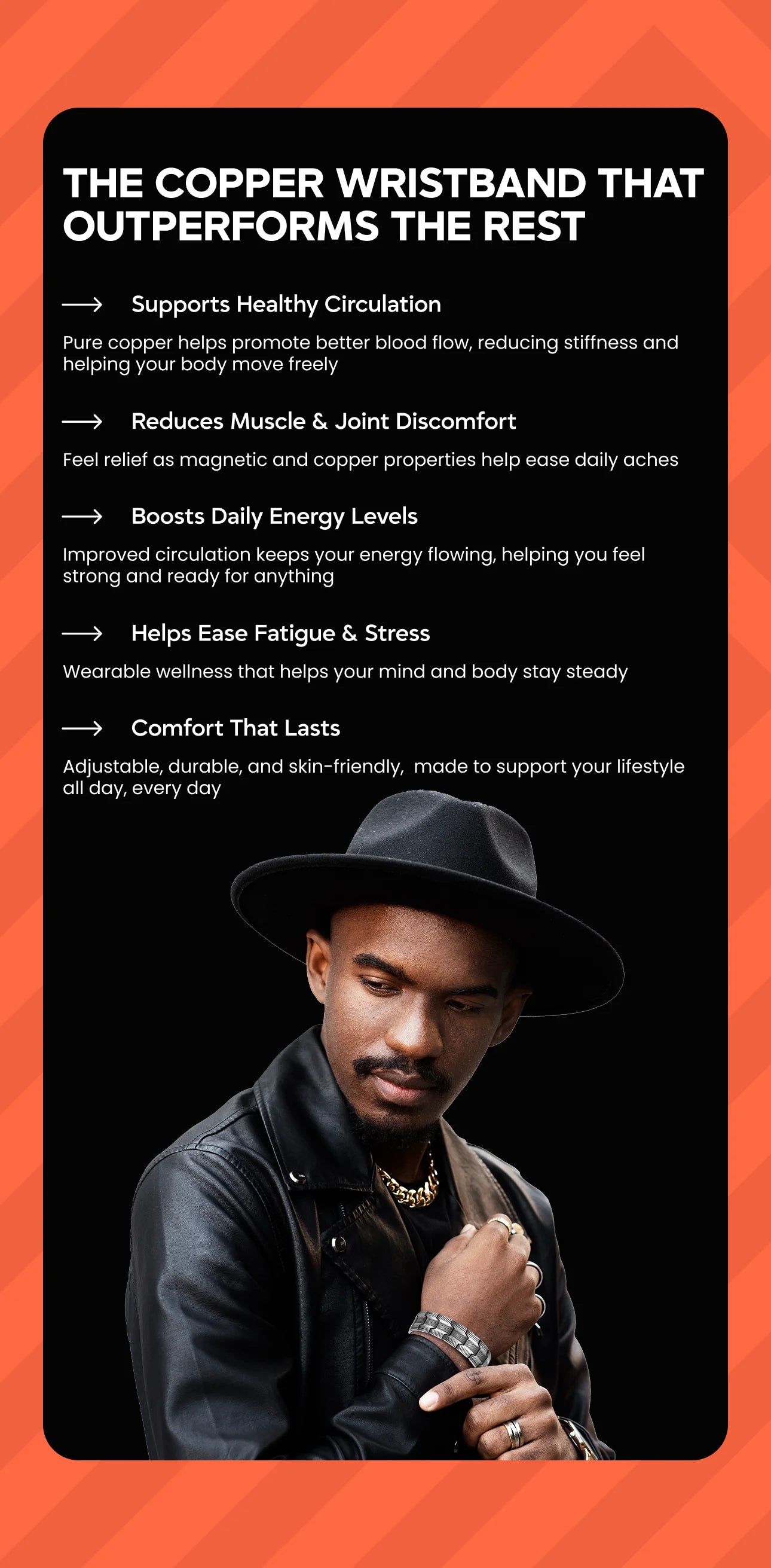 At Cuvogue, wearable wellness meets modern design. Our premium copper wristbands help support circulation, reduce fatigue, and keep your energy steady, while elevating your everyday look with confident, refined style.